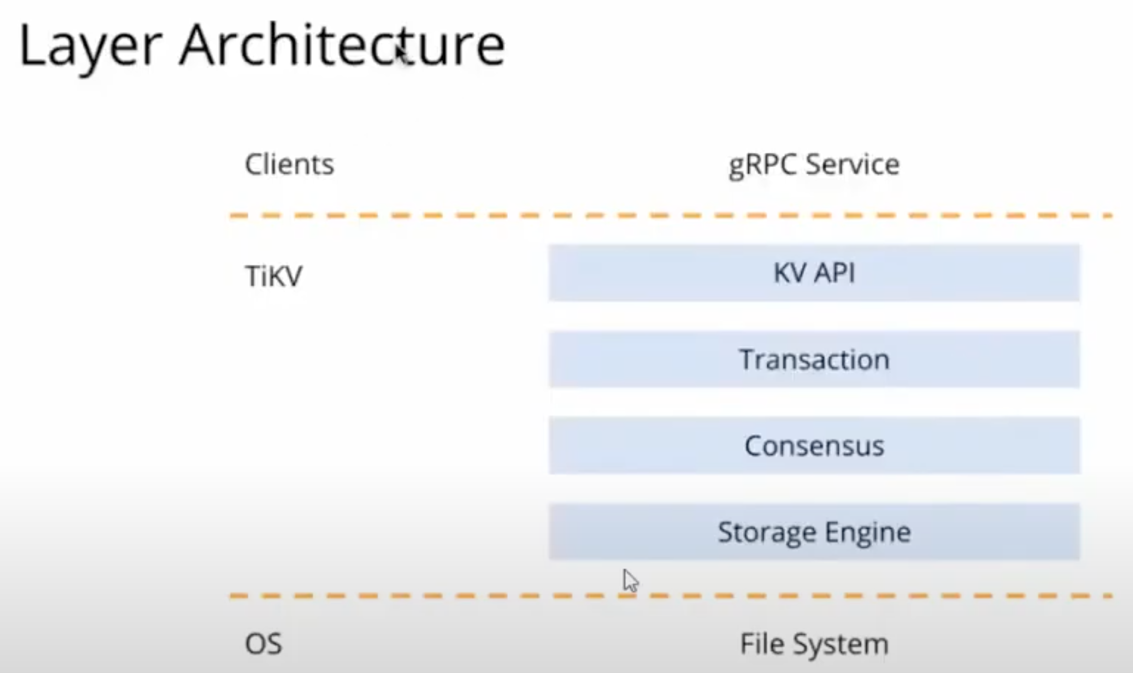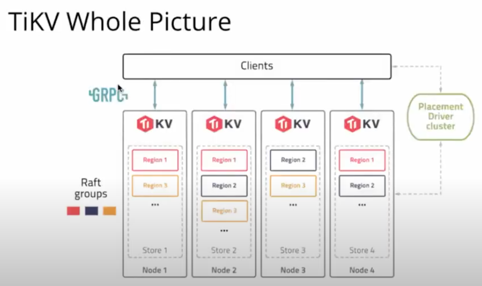 - Clients (using the gRPC protocol to connect to TiKV)